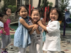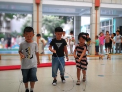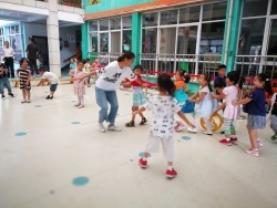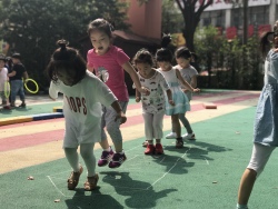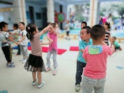 开学以来,老师们根据幼儿的年龄特点,与孩子们共同选择感兴趣的民间游戏素材,在家长们的大力配合下,开了一项项丰富多彩的民间游戏活动。 “丢沙包”、“网小鱼”、“跳房子”、“赶小猪“、“炒豆豆”、“追尾巴”、“老鹰捉小鸡”等等趣味性强,安全易玩的游戏充分调动了孩子们游戏的积极性。无论是晨间活动还是户外活动时间,在操场上都会见到老师们带领宝贝们快乐玩耍的身影。孩子们在各式各样的民间游戏活动中,收获了欢乐,锻炼了身体,培养了感情,而老师们也兴致勃勃的加入孩子们,倾听、躲闪、拥抱、交流、回味着童年和伙伴们一起游戏时的情景。