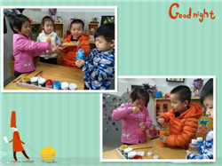快来和我们变魔术吧!上摇摇、下摇摇、左摇摇、右摇摇、魔术魔术变变变!一瓶瓶彩色水制作完成了。
