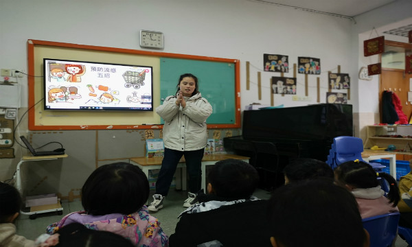 在活动中,教师以通俗易懂的语言、生动形象的案例,结合精心制作的PPT课件,系统地向孩子们讲解了流行性感冒的发生,让孩子们对流行性感冒有了初步的认识和了解。同时,教师还从生活细节方面介绍了防范流感的具体方法。比如:做好保暖工作,避免受凉;勤洗手,多喝水,多吃水果,均衡饮食;坚持冬季户外运动;多开窗通风,保持室内空气新鲜,尽量少到人员拥挤的公共场所;充足休息,提高睡眠质量,避免过度疲劳等。