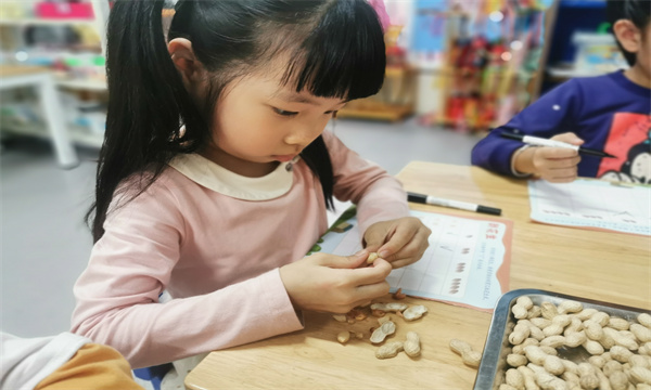 为了让幼儿了解秋日果实,也提高幼儿的动手能力,10月12日,天宁区实验幼儿园大二班的孩子们与花生进行了亲密接触。