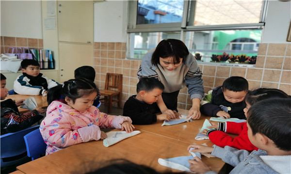 为了让家长能够真实地感受到孩子在幼儿园学习生活的环境和氛围,近距离观察、了解幼儿,感受幼师职业的特点,丰富课程资源,12月3日,天宁区实验幼儿园中四班迎来了一位妈妈老师,那就是邱皓城小朋友的妈妈。邱妈妈给每位小朋友准备了一块正方形的毛巾,带着孩子们一起进行折毛巾胡萝卜的手工活动。
