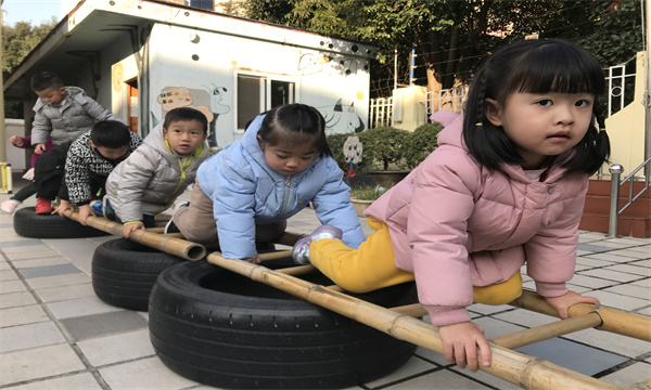在户外游戏中不仅练习了平衡、钻爬和跨跳等基本技能,发展了幼儿上肢动作和力量,还让每个孩子也在这自主探索、自主游戏的过程中获得了快乐,发散了思维,体验到创造的乐趣。
