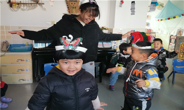 1月14日上午,天宁区实验幼儿园小一班郭书臣小朋友的妈妈走进了课堂,她以游戏化形式引导幼儿了解认识毛毛虫,帮助幼儿了解了毛毛虫是怎样变成蝴蝶的。看!孩子们边玩边学多开心啊!