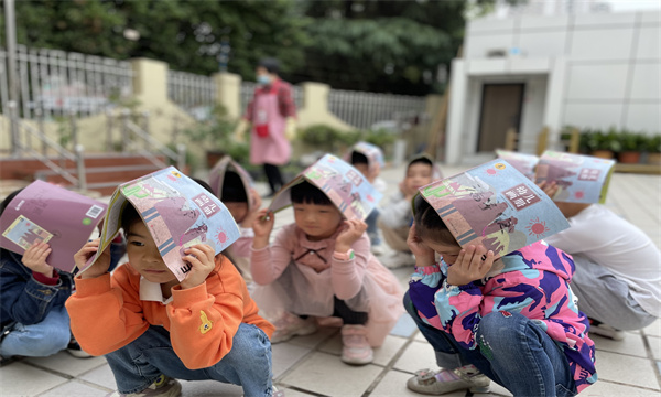 当第二声警报响起,教师立即带领幼儿迅速而有序地离开教室。他们抱头、弯腰,按照指定路线迅速撤离危险地带,前往室外空旷的地方。