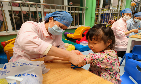 检查过程中,宝贝们都能遵守秩序,一个接一个,十分顺利。面对令人害怕的抽血,老师们提前鼓励幼儿,告诉他们不用害怕,要勇敢面对。在内科和口腔检查结束之后,老师还及时和部分家长沟通孩子的口腔问题,提醒他们要注意预防和修补龋齿。
