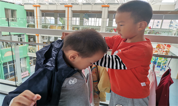 看!孩子们纷纷做着力所能及的事情。他们有的擦桌子、有的分发餐具、有的为弟弟妹妹服务……样样都做得有模有样呢!