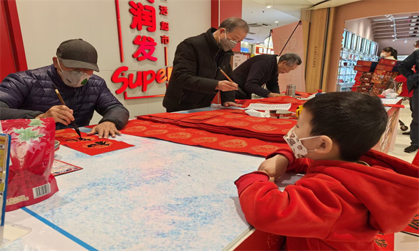 瞧,孩子们在家长的陪伴下走进超市购买春联,装扮自己的家;看,爷爷的春联写的太好了,妈妈给我买一个吧!妹妹快来,爸爸买了好多年货,我们一起拆开看看……