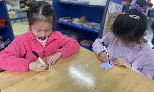 孩子们大胆想象,通过画、贴、剪等形式,制作书签作品。瞧!有树叶形状的书签、有爱心形状的书签、有花边形状的书签……每一个书签都凝聚着孩子们小小的智慧,活动的最后,孩子们与好朋友互赠书签,分享快乐!