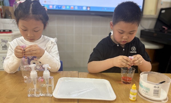 “快看快看!杯子在吐彩虹,太好玩啦!”2025年4月27日上午,常州市天宁区实验幼儿园中二班开展“彩色喷泉”科学活动,幼儿纷纷化身小小科学家,在趣味实验中感受科学魅力。