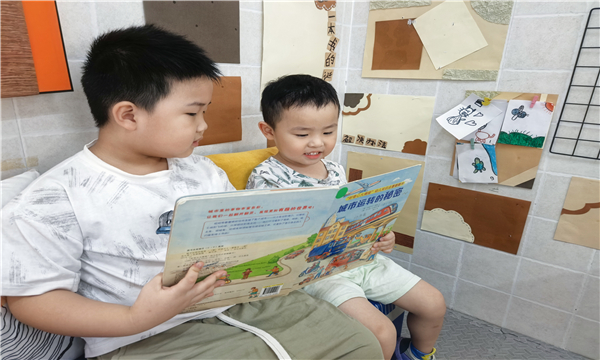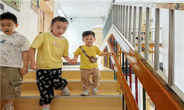 入园后,大班孩子们便开启了“小大人”模式。在饮水区,他们耐心地帮小班弟弟妹妹接好温水,手把手教他们握住水杯,轻声提醒“慢慢喝,别呛到”;阅读区,哥哥姐姐们会挑选有趣的故事书,坐在小椅子上,用生动的语气为弟弟妹妹讲述,遇到听不懂的地方,还会放慢语速、反复讲解;户外活动时,他们更是细心十足,牵着弟弟妹妹的手,有序地带领大家下楼,全程关注着小同伴的安全,提醒“小心台阶”。