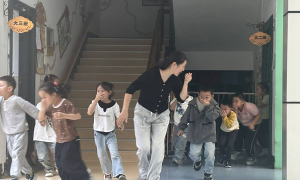 消防警报响起,各班教师迅速作出反应,遵循“尽快疏散”原则,分工明确,带领幼儿通过预定疏散路线开始撤离,同时提醒幼儿在逃生演练中保持镇静,有序撤离,避免踩踏。历时1分28秒,全体师生撤离到事先指定安全区,顺利完成演练任务。