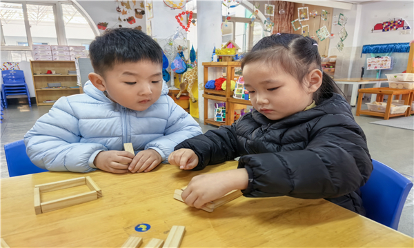 活动中,黄老师以提问引导孩子大胆想象,不设固定模板。孩子们从摸索积木拼接,到自主搭建小屋、高架桥、城堡,每件作品都独一无二。过程中,孩子们不仅锻炼了动手能力,还在试错中感知平衡、承重等简单原理,实现玩中学。